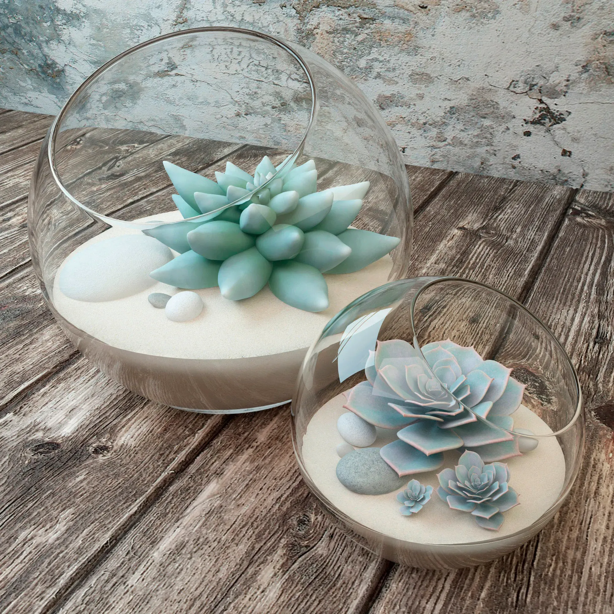 [رایگان] گلدان شیشه ای 3dsky – 2 species of succulents in glass vases