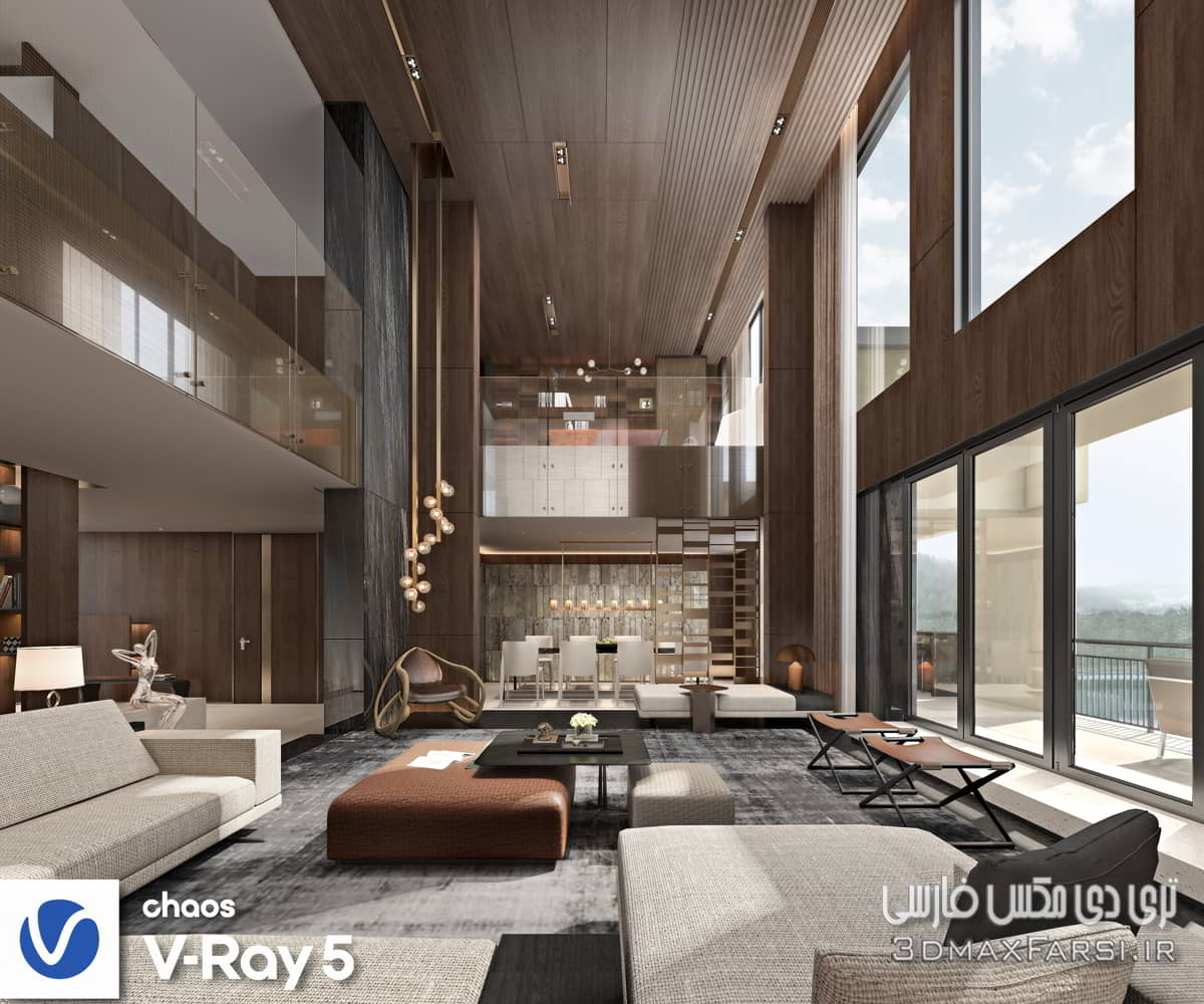 در این صفحه میتوانید یک صحنه آماده به رندر داخلی ویلا با وسعت بالا (نشیمن و غذا خوری،بار، بالکن سقف بلند) برای تری دی مکس + ویری را دانلود کنید.