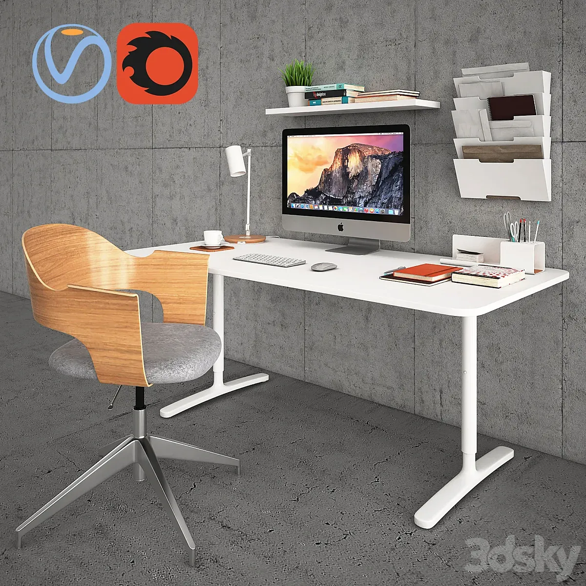 مدل سه بعدی میز کامپیوتر تری دی مکس + ویری Bekant Desk with Fjallberget