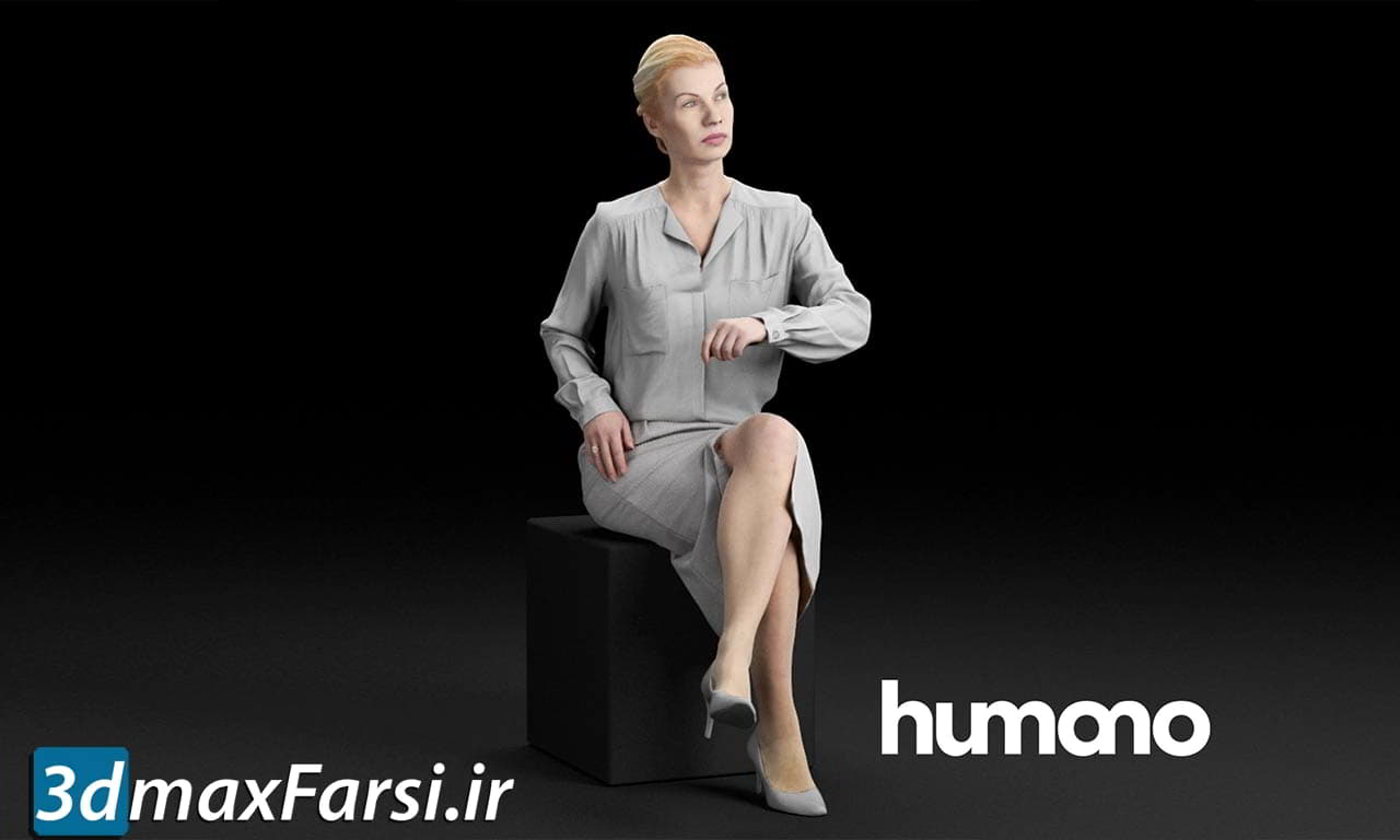 دانلود آبجکت سه بعدی انسان Humano Elegant business woman in skirt sitting and looking 0113