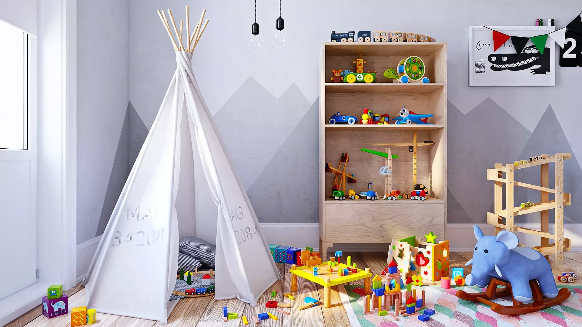 مدل سه بعدی اسباب بازی: فضای داخلی اتاق کودک، زمین بازی در فضای باز یا نمایشگاه فروشگاه بازی و مهدکودک