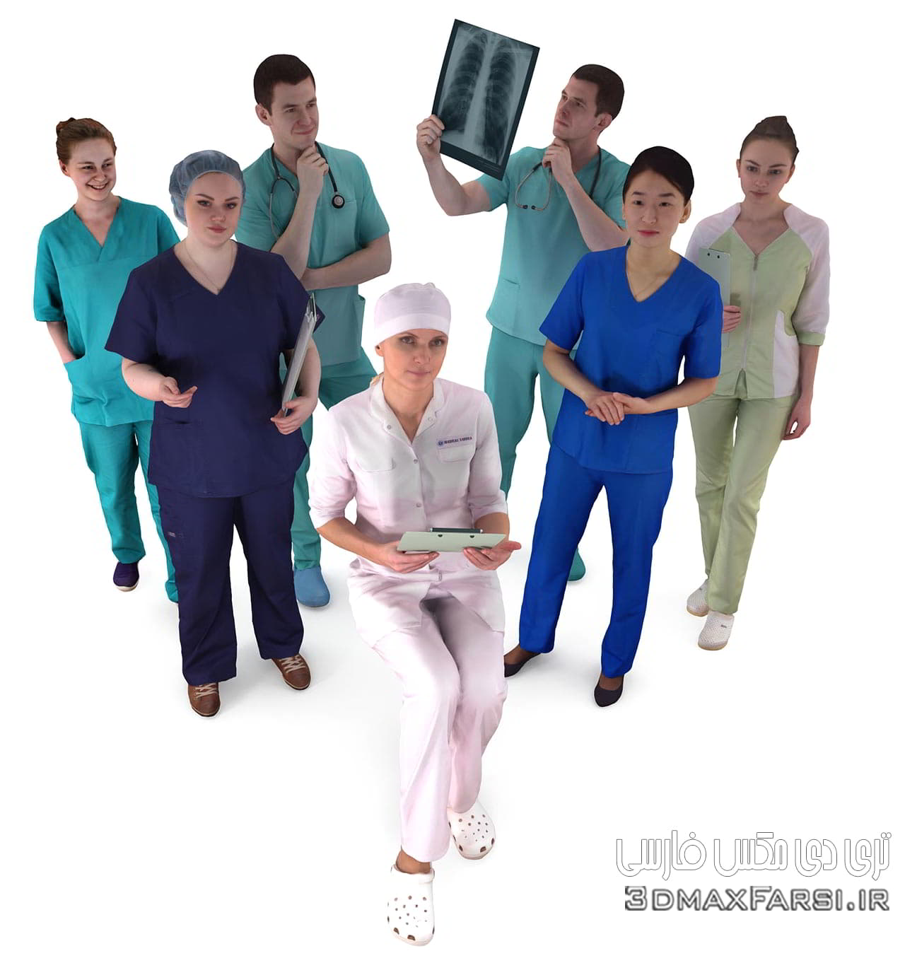 در این صفحه میتوانید یک مجموعه آبجکت دکتر پرستار تری دی مکس در حالت ایستاده و نشسته ( Medical Collection x7 3D Model 2018) را دانلود کنید.