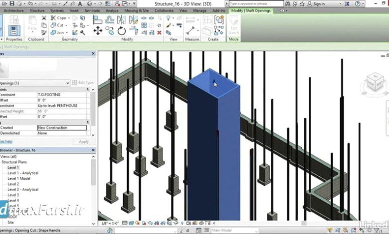 آموزش اضافه کردن Shaft openings رویت استراکچر Revit Structure
